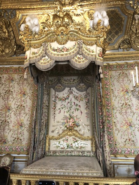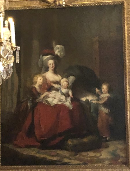 I would be a very grouchy queen. These young girls were pulled away from their families in Spain, (for Louis XIV), Poland (for Louis XV), and Austria (Marie Antoinette at 14 for Louis XVI.) Why have arranged marriages with girls from other countries? Because, for example, it was a smart alliance for Austria to be connected to the powerful king and country of France. Poor Marie Antoinette couldn’t bring a single family member with her or even her dog.