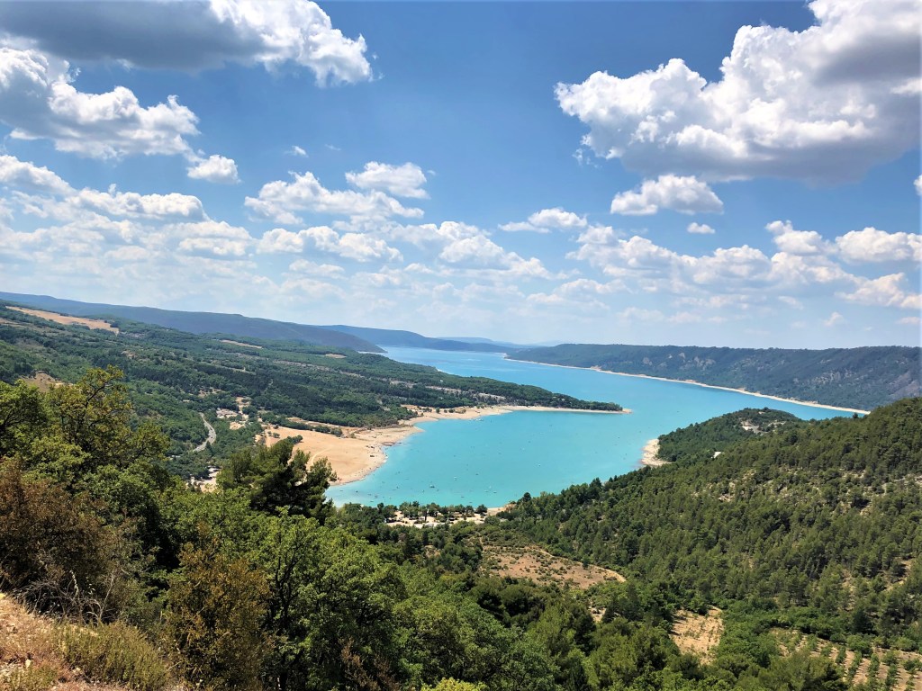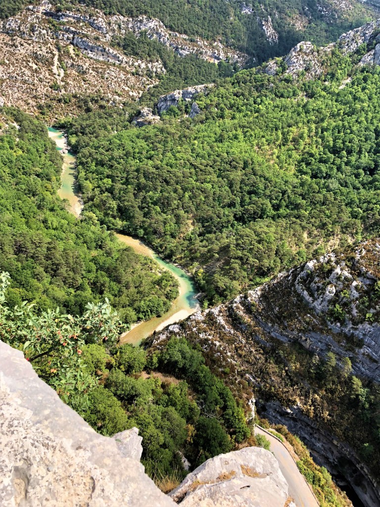 Avignon is the perfect home-base from which to explore Provence! It’s about 60-90 minutes from many towns we want to visit. Today, though, we drove 3.5 hours to the Gorges du Verdon. It’s a natural phenomenon like the Columbia River Gorge only deeper in places with deep azure water, like you’d see in San Tropez. From Avignon, we drove 90-minutes on the freeway, then through lavender fields (already harvested) and farmland for other crops. Then, we started climbing up and into The Gorges, which are gorgeous! (pun intended)