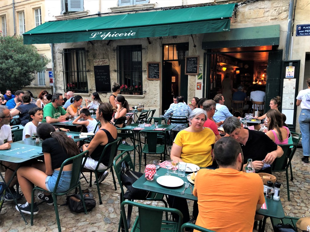 It’s 11:09pm and we’ve just gotten home from dinner! We walked around the small neighborhoods of Avignon and landed on a spot down the street from our flat! It sells vintage clothes and has a family restaurant with a mother and her two daughters working. (I imagine they are all there until midnight.)