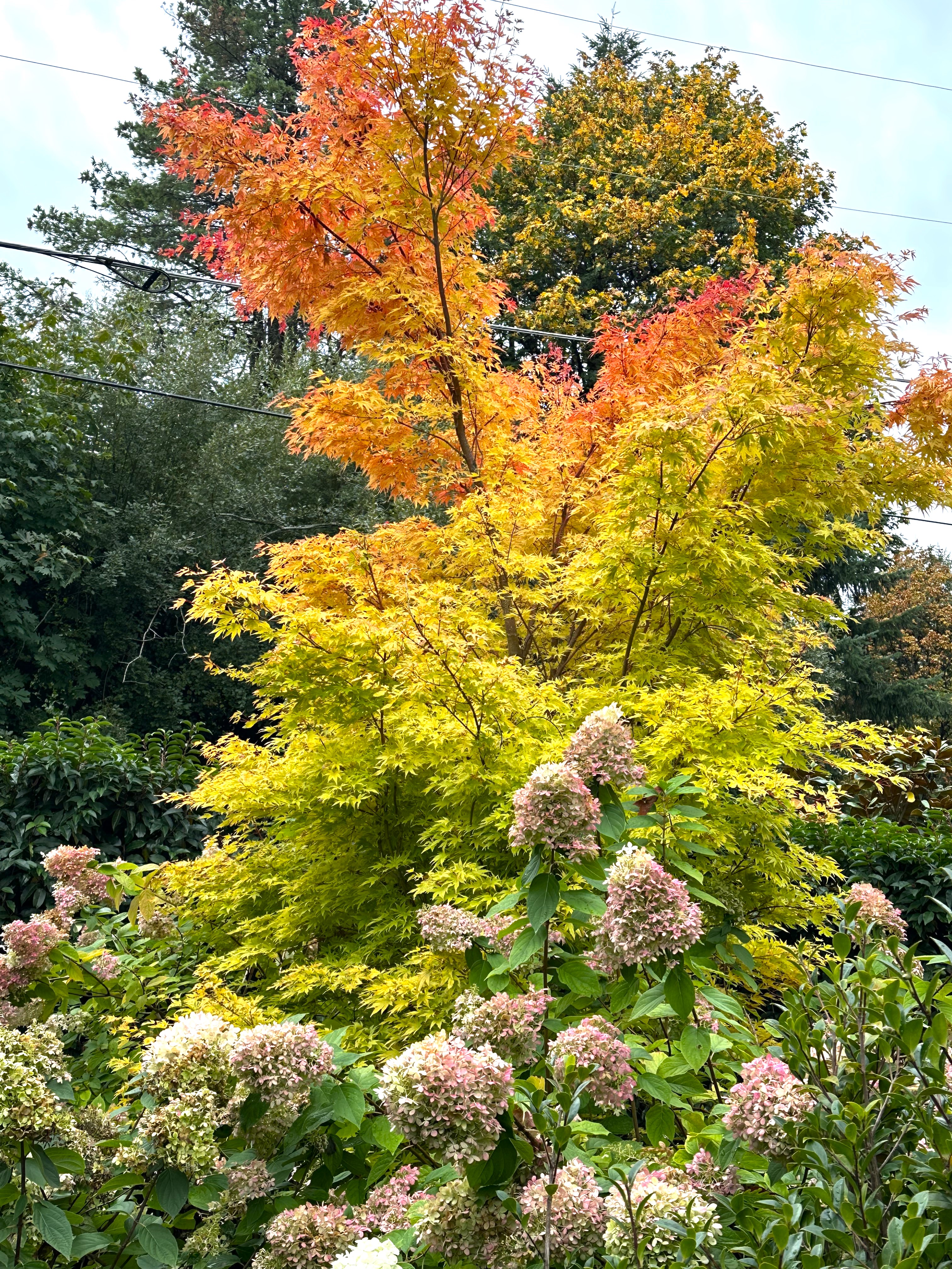 In spring and summer the foliage present deeply cut, pale green leaves that display attractive red margins. Come fall, the leaves turn a vibrant, golden yellow and pink. This garden gem thrives in bright dappled shade in warmer regions, or in full sun in cooler regions.