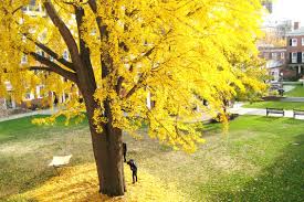 The first time I remember seeing Ginkgoes was in New Haven, Connecticut. Living in Morse College, a small grove of Ginkgoes had been planted between Morse and Ezra Styles on both sides of the pathway that directed towards the Payne Whitney Gym. Nearly every day, I would walk by the trees and admire their shade, their color, and their leaves. Turning bright yellow in the fall, they were always fun to see as they turned color and soon covered the ground with a golden carpet. The fallen fruit of the female tree, on the other hand, smelled like rancid butter or vomit as the seeds and fruit were spattered underfoot along the path. Not all of the trees were female, thank goodness, but enough bore fruit to leave an indelible olfactory impression.