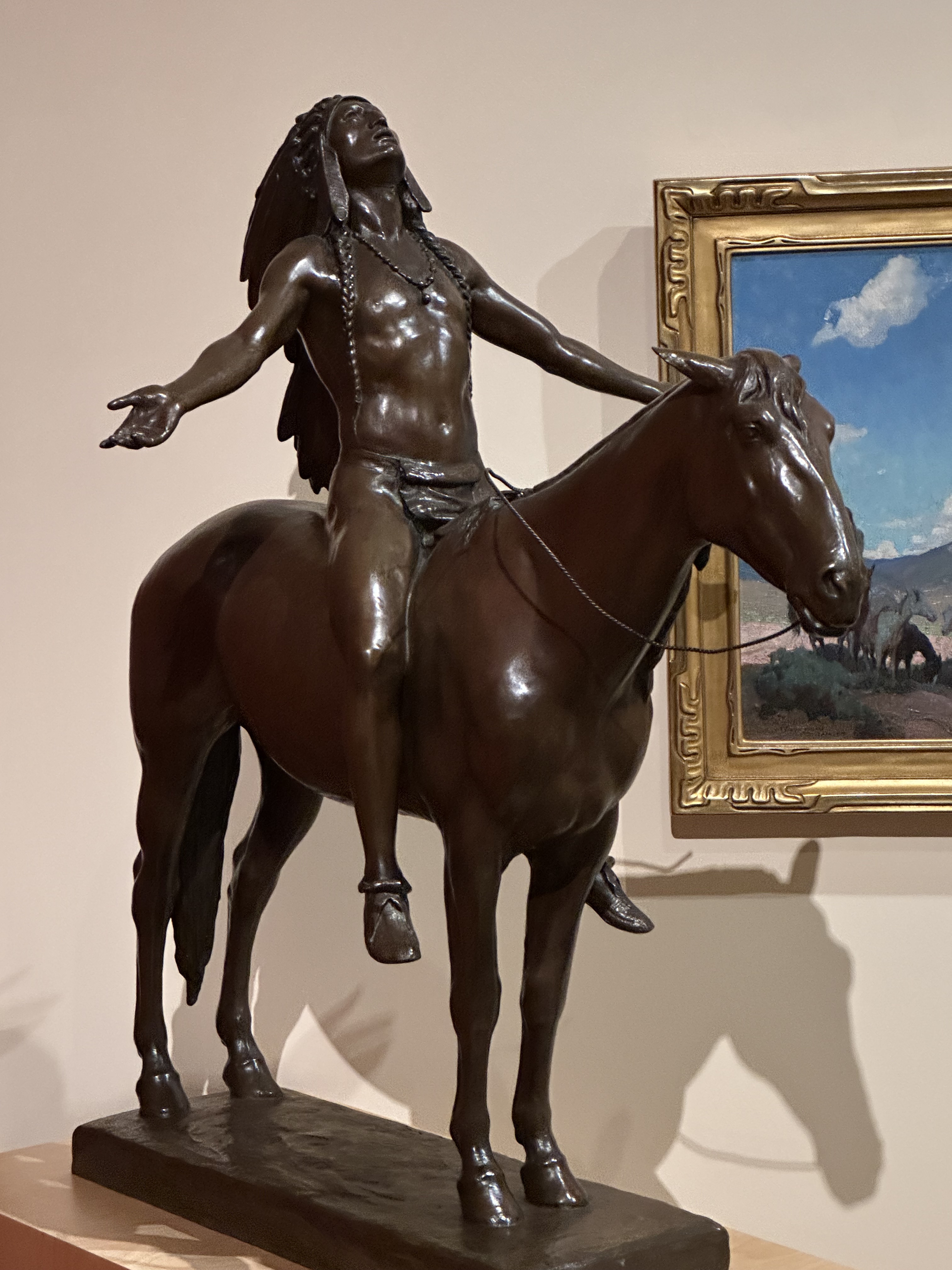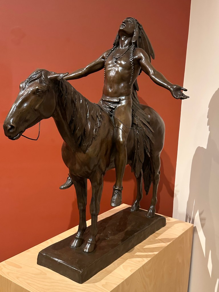 And there amidst the Wild West artifacts, books, armaments, and statuary was a bronze, about 4 feet tall, featuring what looked to be the same statue from the Boston Museum. As powerful as it was to witness in the tarnished and weathered version of the Dallin statue in the Boston plaza, this smaller statue was equally evocative of the Great Spirit. [2]