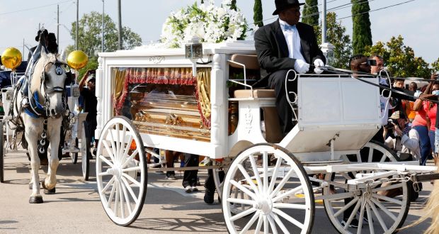 The Floyd family members spoke about Perry as a “gentle giant,” and talked of his school days. Friends from high school and beyond fondly recalled his athletic prowess in football and basketball. Big Floyd’s funeral carriage was followed by a second carriage, which had two large football balloons and a poster with references to Jack Yates, 88, his high school football jersey number. His Yates team won the state football championship. Floyd was also a promising power forward on the basketball team.