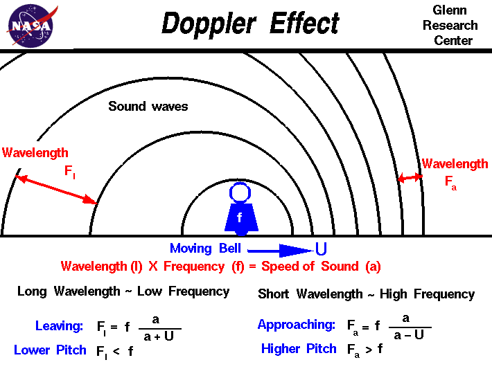 A common example of Doppler Shift is the change of pitch that we hear, when a train is heading toward us, and then there is a change in sound as it recedes from our location. It happens with ambulances, cars, horns, and other changing sources of sound. There seem to be three phases of the sound, 1) the sound as the source approaches, 2) the sound as it is upon you, and then 3) the sound as it is heading away. Compared to the emitted frequency, what we hear is a higher frequency during the approach, identical at the instant of passing by, and a lower frequency during the recession of the source.