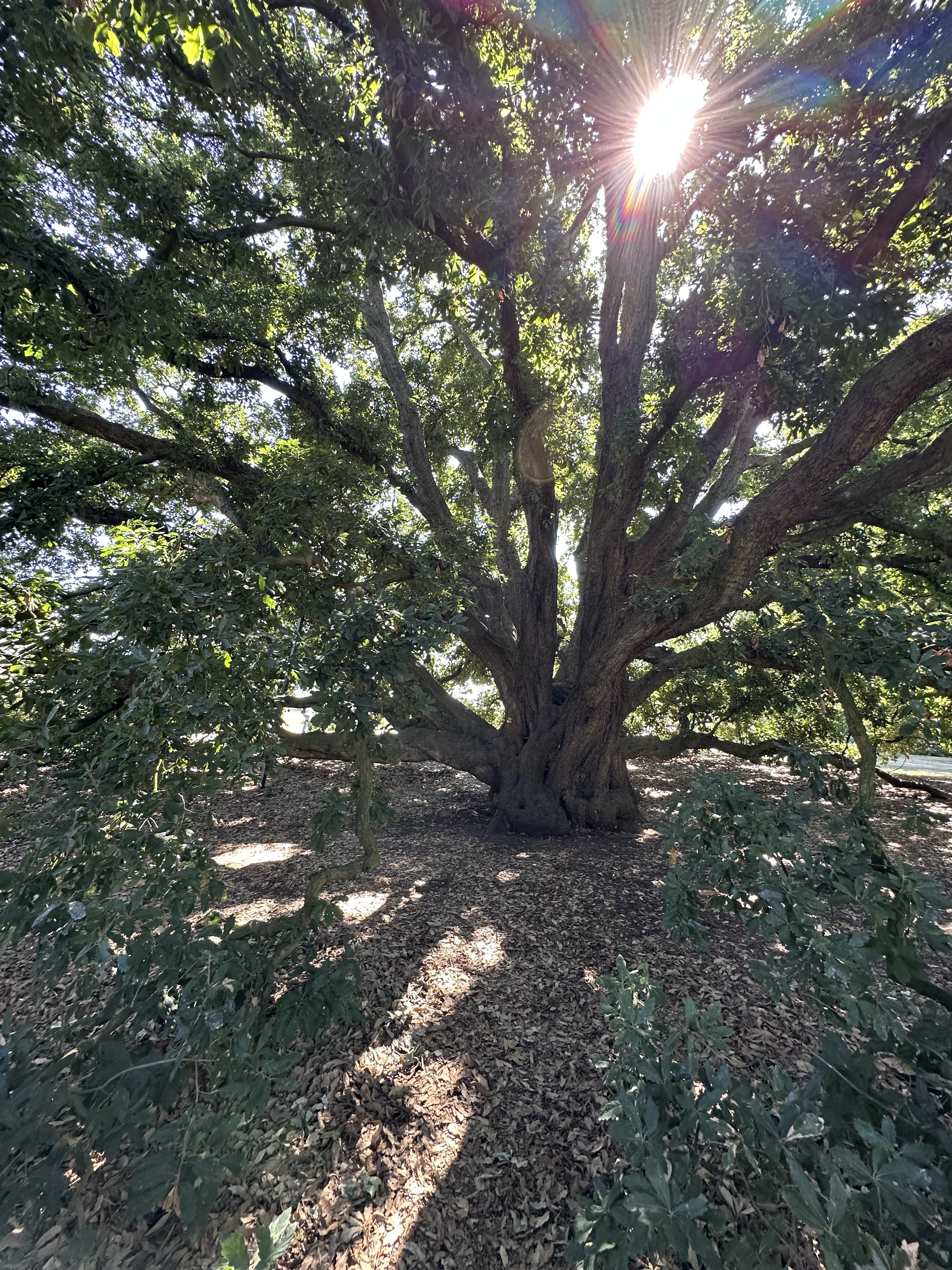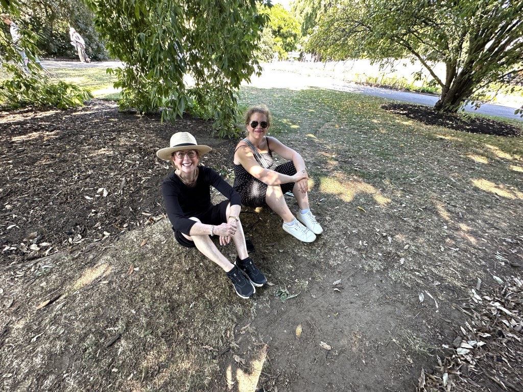 Tracy & Margaret in shade provided by Turner’s Oak (Quercus X turneri)