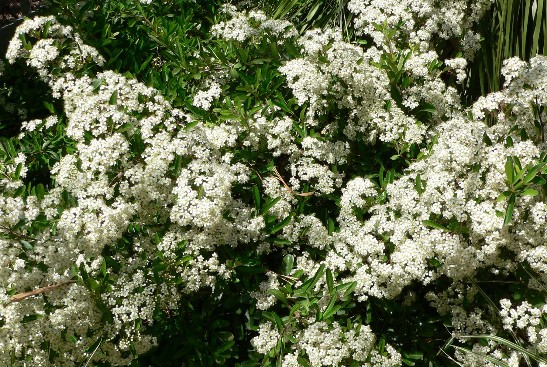 Pyracantha, interestingly enough, have proven to be a good privacy fence around houses. They are a multi-purpose security wall against intruders. If you have ever run into one, you would know what I mean. They are also a good shrub for wildlife: small birds build nests deep in the branches, bees love the summer flowers, and the berries make a good food source for the animals.