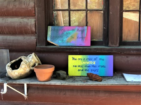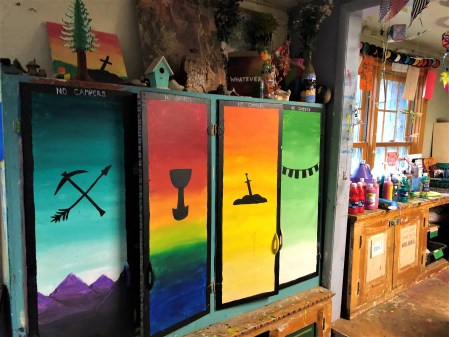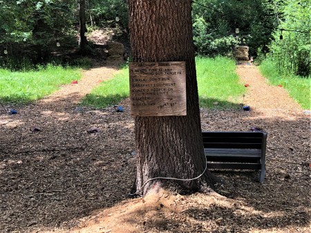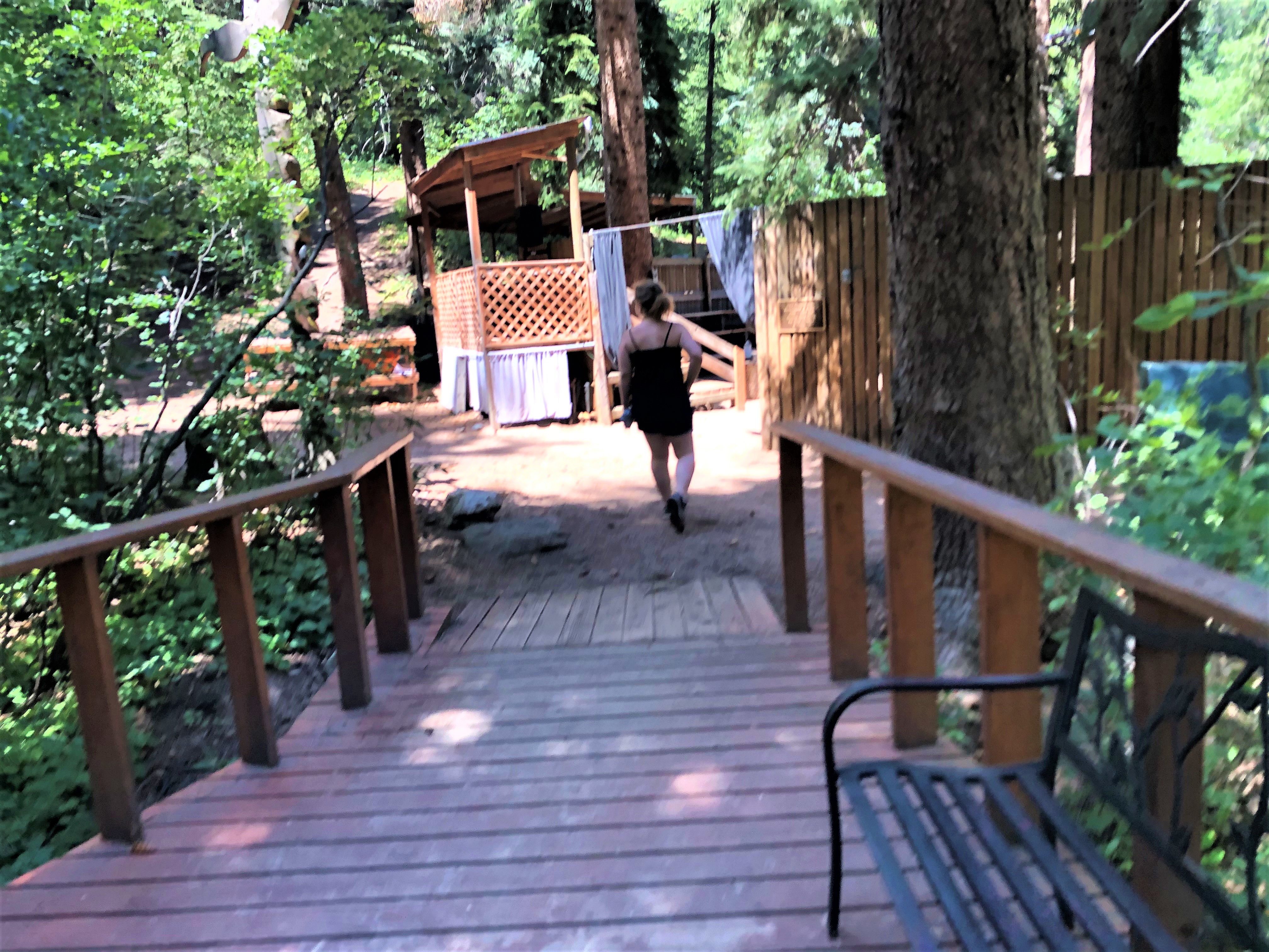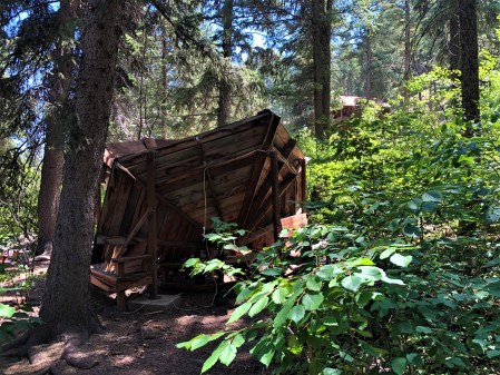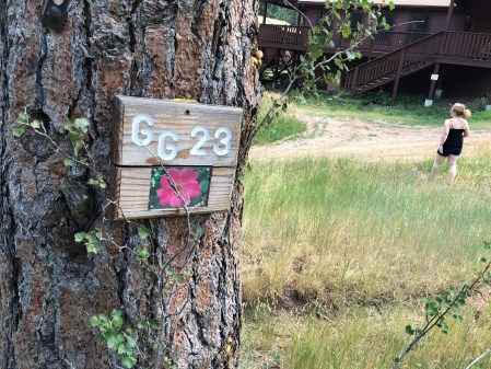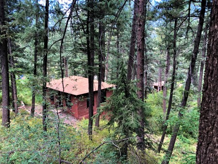 On Monday, July 20, 2020, we walked the property and sought the views of the same and the different: the same cabins and monuments, the different wildlife and the physical plant changes. What follows are two slide shows, one of the places that Margaret wanted to revisit, and the other of the property itself, which is the majestic parts of the corner of Santa Clara and Taos Roads. I will call them Meriwether Heights (Margaret Hooper’s middle name), Art Bottoms (usually in basements at GG) and Geneva Hills (these are magnificent hills).