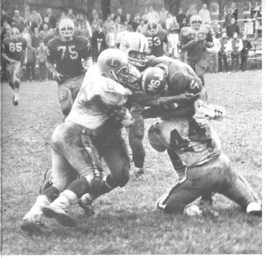The next season, in 1971 we had some pretty good football players on the team, including several All Conference first and second team returners. It included Joe Perticone (#88), who played at Princeton, and Art Meadowcroft (#79) who played at Minnesota and was drafted in the 8th round by the Buffalo Bills. The coaches and players were all looking forward to a great season, earning top honors outright rather than backing into it. Personally, I was happy to be playing. As monster back I started every game on defense and, from time to time, subbed for Smitty at fullback. In one play at fullback against Edmonson, I caught the ball about 10 yards deep over the middle and turned to run up-field. Suddenly my knee hit the crown of the opponent’s helmet and we both went down. My knee hurt like crazy when I returned to the huddle, and I could not figure out why play was halted. Apparently, my knee had knocked out my opponent. We had to wait for the medics to cart the downed player on a stretcher to the sidelines. We lost the game badly.
