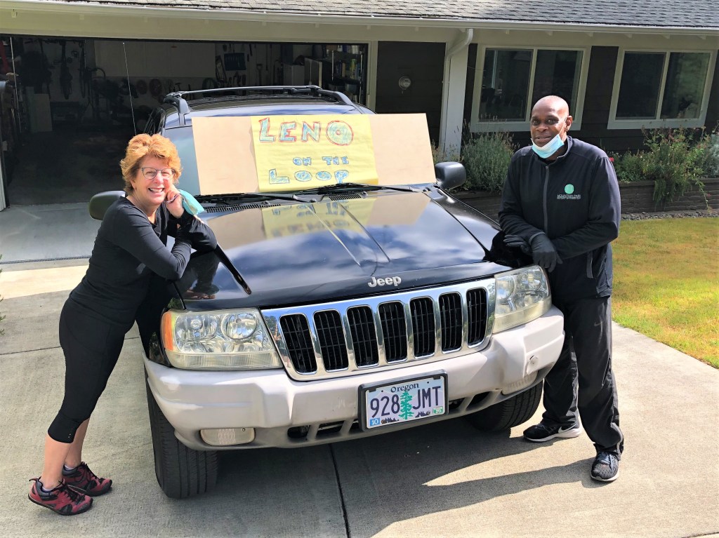 The hand-made sign, “Leno on the Loop,” that we speedily crafted, announces that Leno Pugh is open for business. He is willing to support all those who want a personalized workout. And the marketing message is out to all, whether you drive on the Fairmount Loop of not. If you live in the Portland metro area you can start your workout with a pro, who will meet you at Dunaway Park or at your residence.