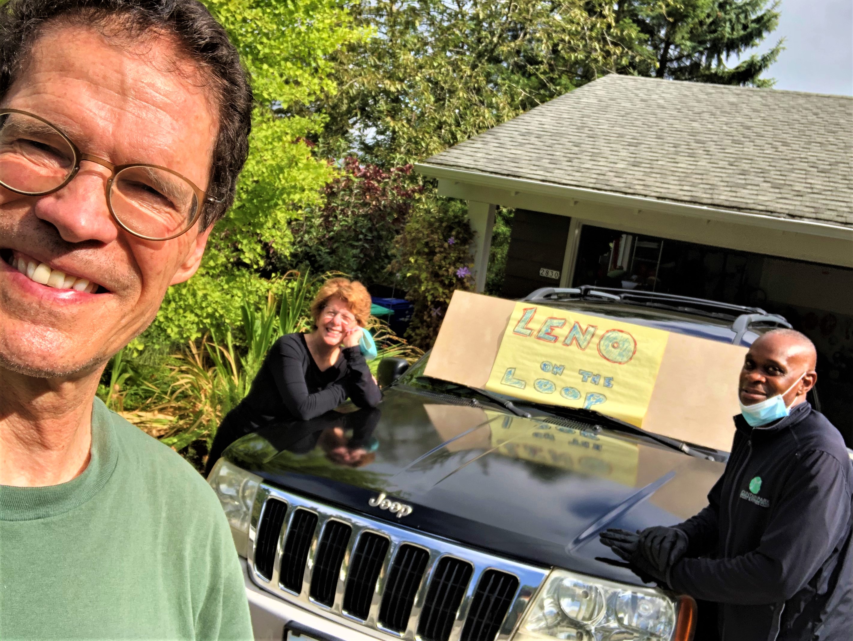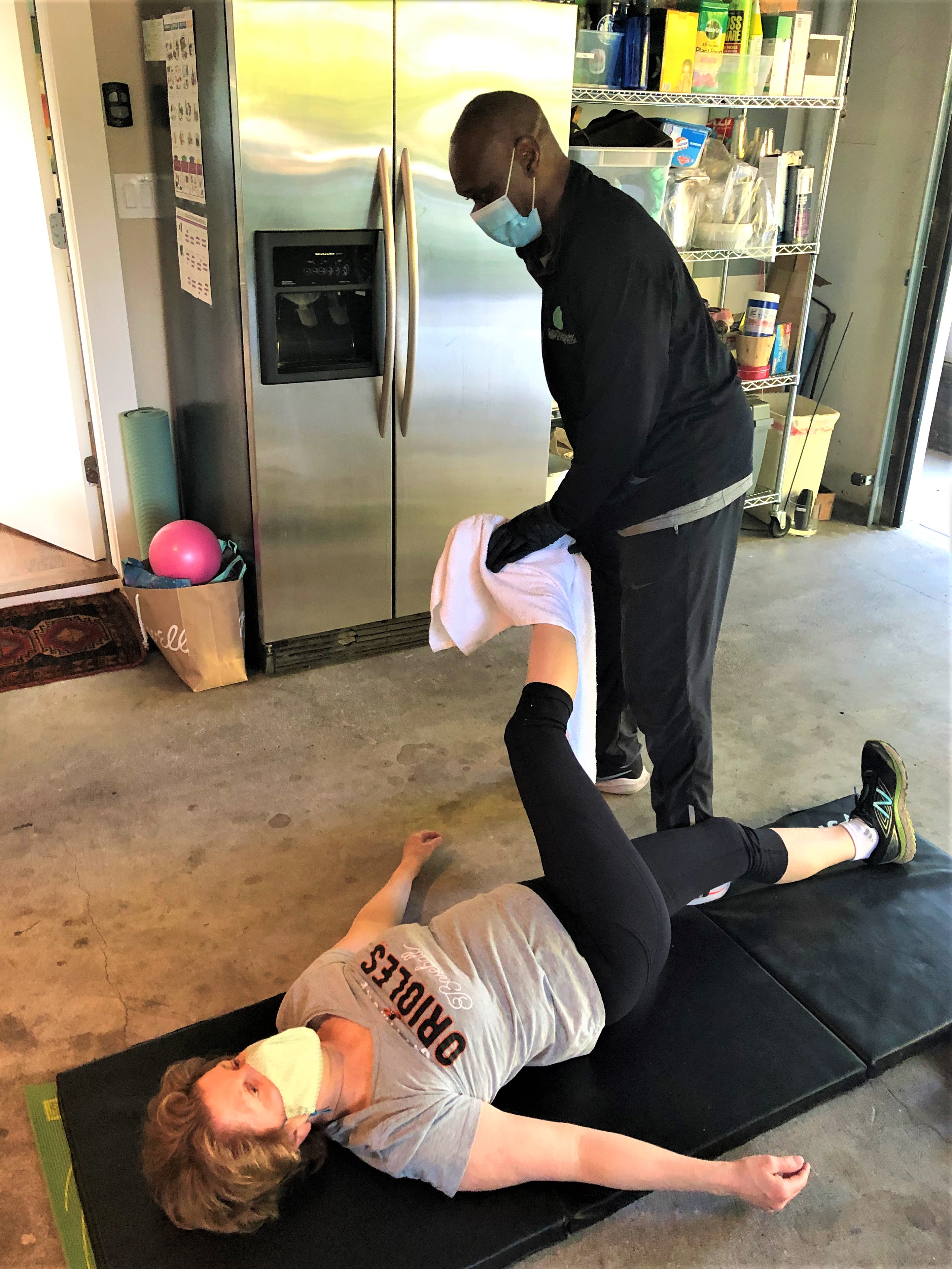 Tracy ran into Leno at Fred Meyer’s one day in the spring of 2020 and asked if he were still working with private clients. He said, “Yes, I am working with my former clients and some new ones in their basements and garages.” We signed up to harden our flabby abs and to feel better.