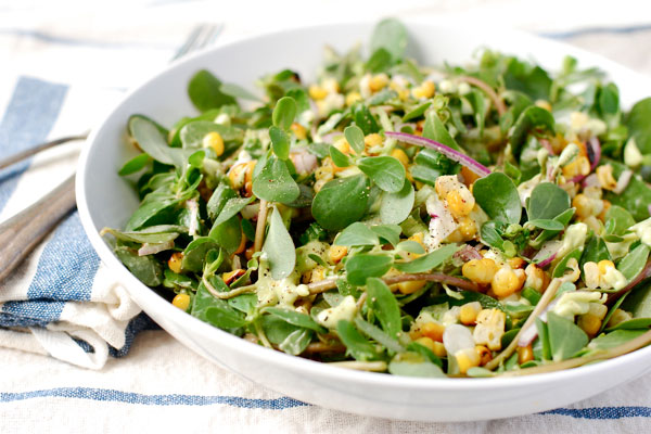 Purslane and corn summer salad