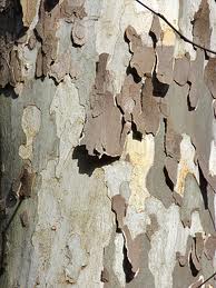 An American Sycamore is easily spotted and distinguished from other trees by its mottled exfoliating bark, which flakes off in great irregular masses, leaving the surface mottled, and greenish-white, gray and brown near the base of the tree. The bark of all trees has to yield to a growing trunk by stretching, splitting, or infilling. While all trees stretch and split as they grow, few show the process more openly than the Sycamore. The reason for this growth process is that the bark of the Sycamore is inelastic, and it is incapable of stretching to accommodate the expansion of the wood underneath, so the tree sloughs it off, particularly during its growth phases.