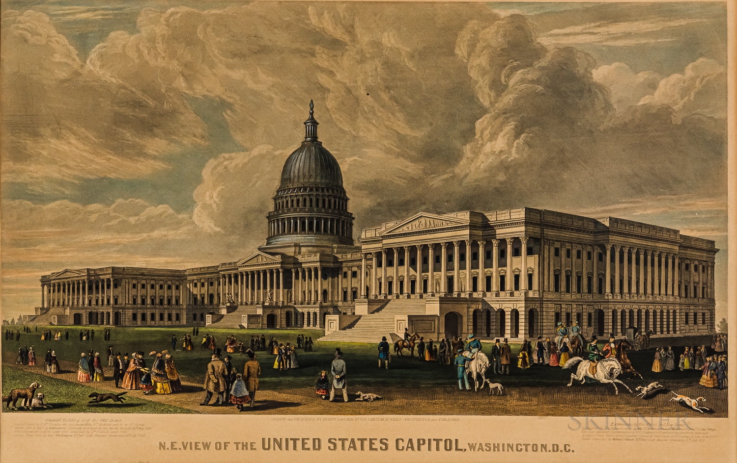 N.E. View of the United States Capitol. Washington, D.C., Drawn and Engraved by Henry Sartain, Hand-colored Engraving, 1863.