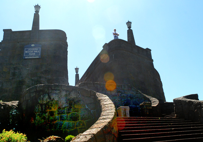[2] From the top of the Butte today, as yesterday, visitors soak up gorgeous views up and down the Columbia River Valley: from the North and East the vistas show off Mt. Hood, Mt. Adams, and Mt. St. Helens, as well as partial views of Mt. Jefferson and Mt. Rainier. The majestic Columbia and Willamette Rivers are in full view. The Butte is a Memorial Park to Joseph Wood Hill, one of Oregon’s most beloved Educators. JW Hill was the father of James Adams Hill and Benjamin Wood Hill, who served Hill Military Academy as President and Vice-President respectively. At the base of the Butte is the Grotto, which is a Sanctuary of Our Lady of Sorrows, sponsored by the Order of Servite Fathers.