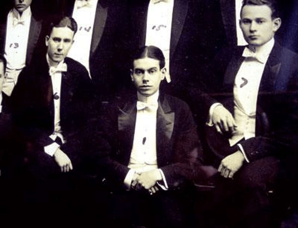 Cole Porter (second from right) on Yale Fence with Whiffenpoofs, 1912