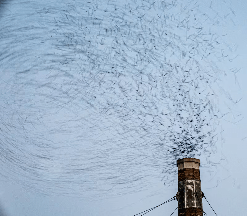 At its heart, a murmuration of swifts is a massive, circular vortex of birds all entering an opening (tree or chimney) as if in one continuous funnel. It is a thrill to witness in person. At its crescendo, the murmuration marks the end of the day and naptime for these mature migrating birds.
