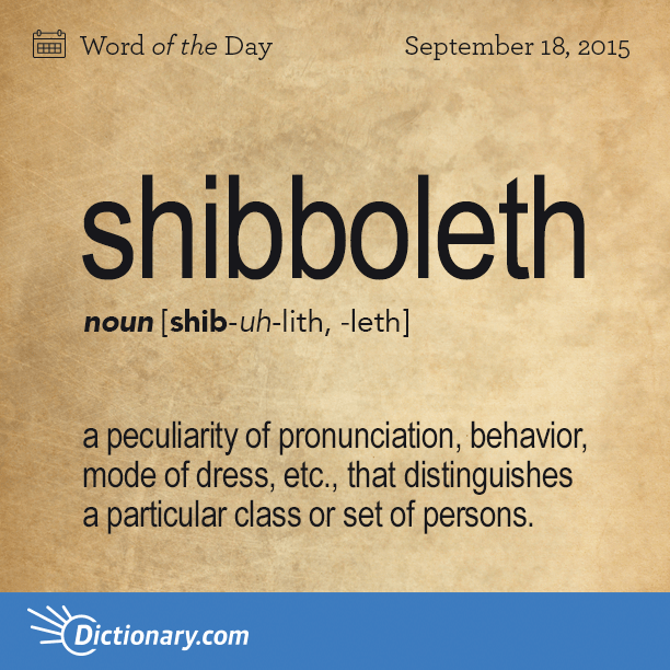 - 1. custom, principle, or belief distinguishing a particular class or group of people, especially a long-standing one regarded as outmoded or no longer important:”the majority, under the influence of vague nineteenth-century shibboleths, understood him to be associating himself with the doctrine that every nation has a right to be a sovereign state”