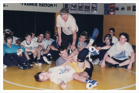 As a coach, he was known for his gentle demeanor (he rarely raised his voice) and for his absent-mindedness. He left his overcoat at gyms so often that Mary Lou sewed his name in the lining. More than once, he left his sons at practice, and had to return to pick them up for supper. “When it came to wrestling, he didn’t miss a beat,” Wayne Martin said.