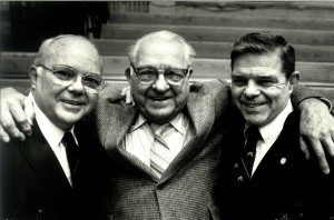 Rex Peery (right) with two sons, Ed (center) and Hugh (left), after Ed’s 3rd NCAA Championship Win