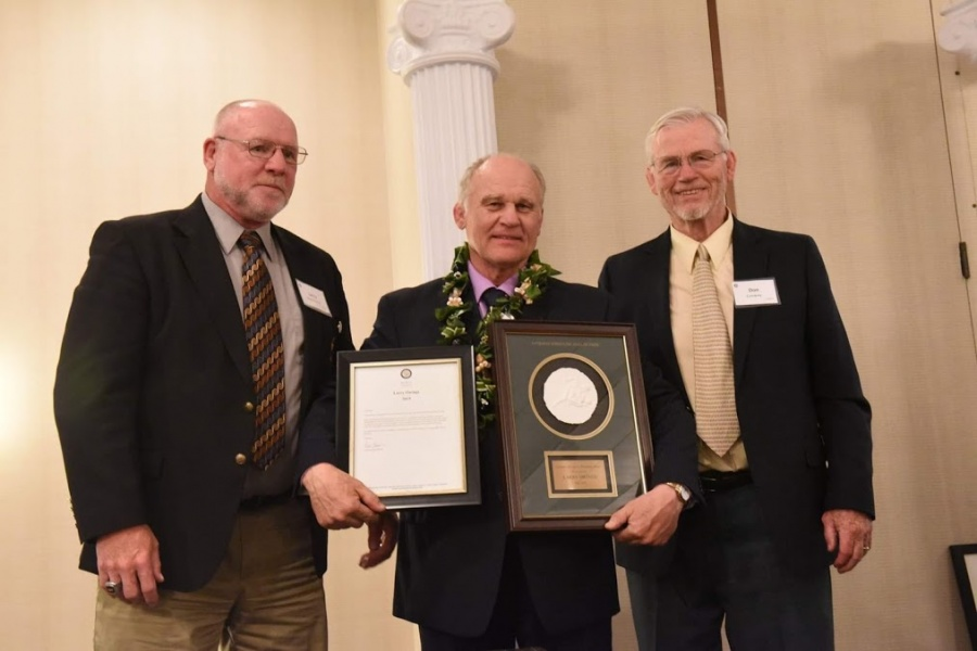 Larry Owings (center) at National Wrestling Hall of Fame induction