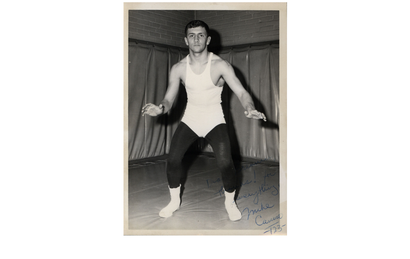 Mike Caruso signed wrestling card from Lehigh photos (1967)